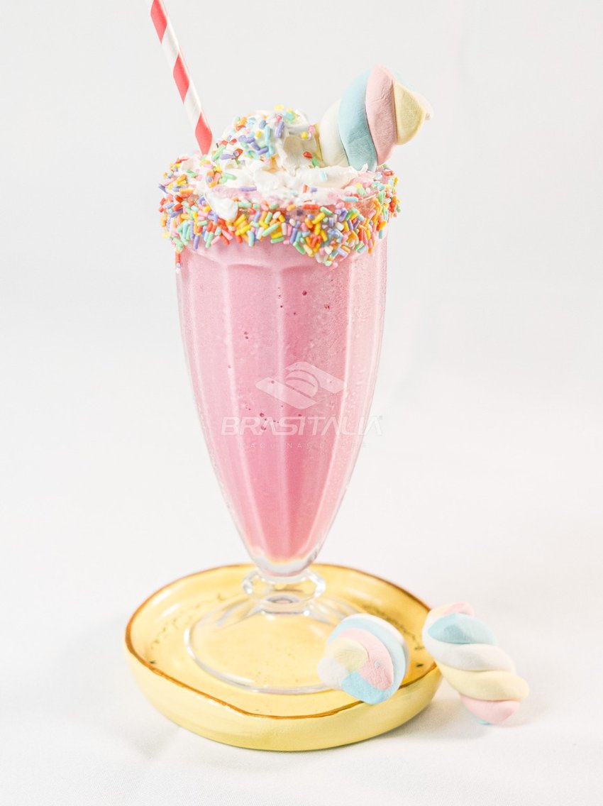 Misture 1 medida (aprox. 25g) de Frappé Morango Brasitália com 100ml de leite gelado e 6 cubos de gelo. Bata tudo no liquidificador até ficar cremoso e monte sua taça conforme desejar