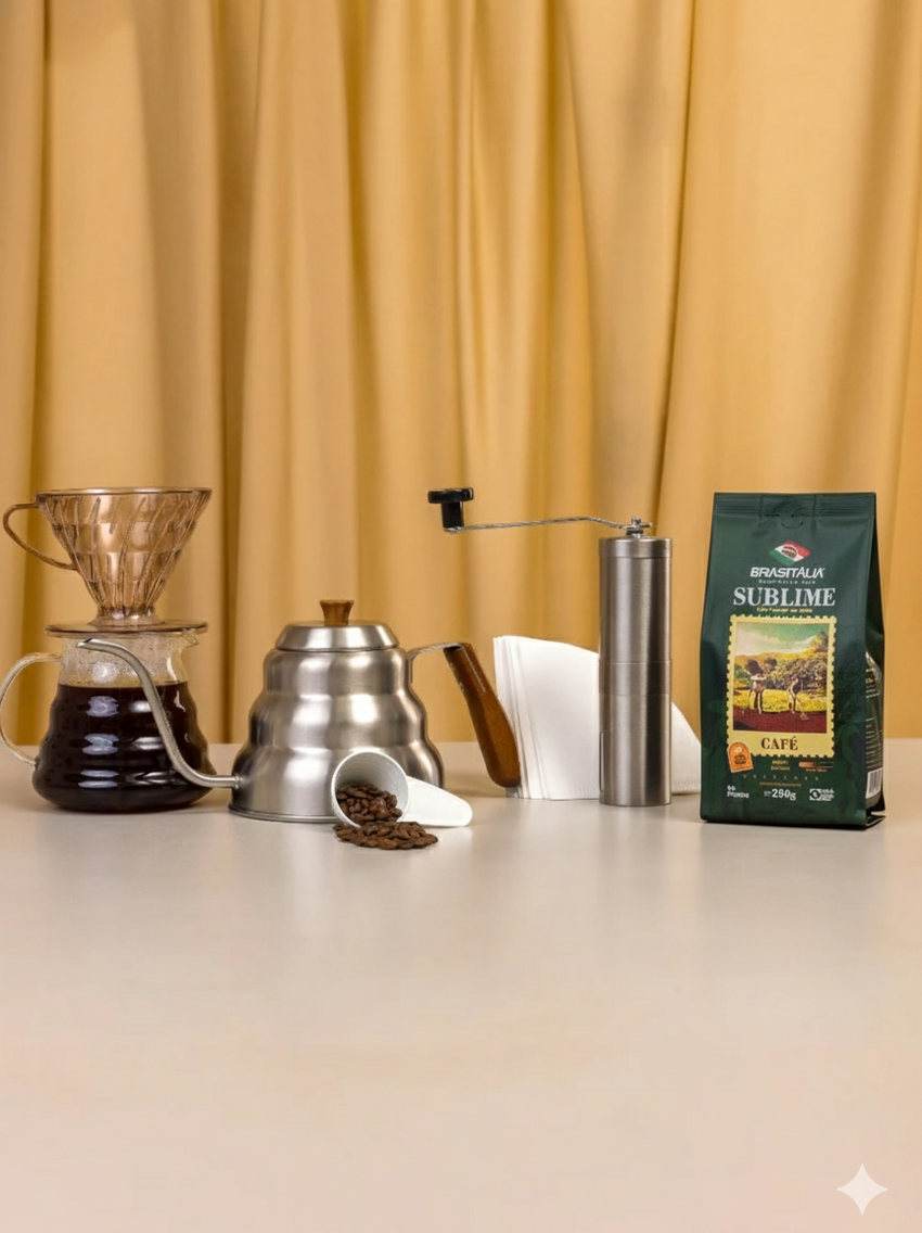 - Moedor Manual de Café: Em aço inoxidável, com ajuste de moagem para alcançar a granulometria perfeita.